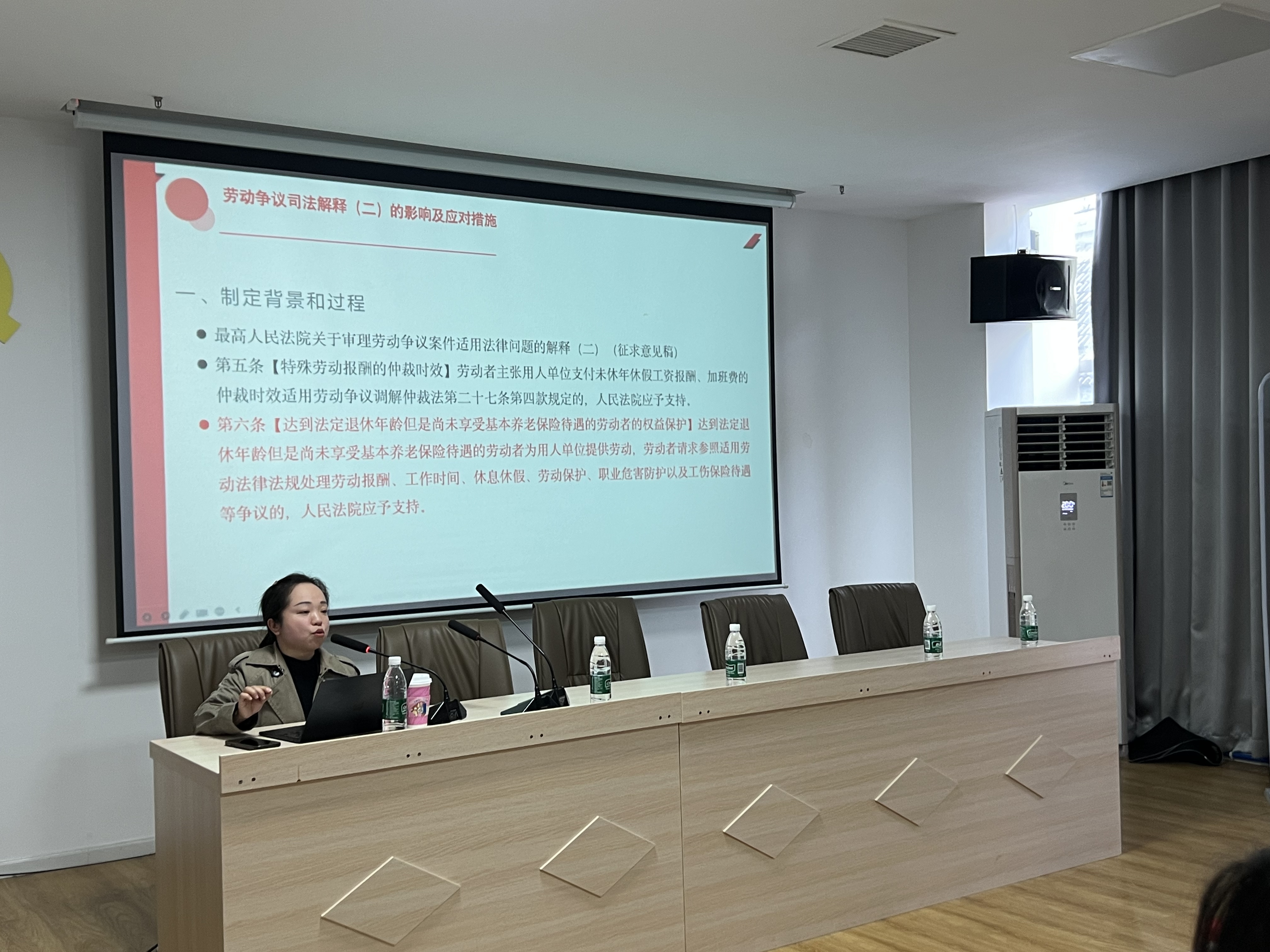 2025年11月20日,同兴律所专项服务团队受邀参加涉税专业服务行业协会会员日活动,刘漫露律师为20余家会员单位及所服务企业的约90余名代表,开展了《劳动争议司法解释(二)的影响及应对措施》的专题法律培训,聚焦劳动争议处理与最新司法解释对企业用工的影响,通过案例分析提出实操建议。活动现场还向参与企业发放了相关法律培训材料,强化企业的预防性法律意识。